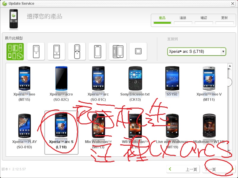 選擇手機型號(這裡是ARC S)別選錯囉。