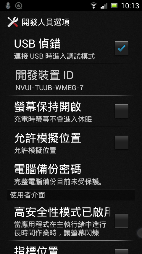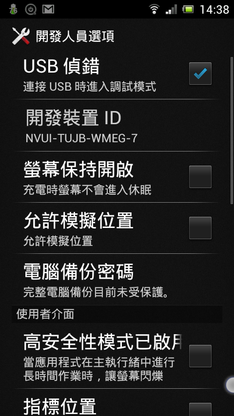 先把手機打開,將USB偵錯打勾,