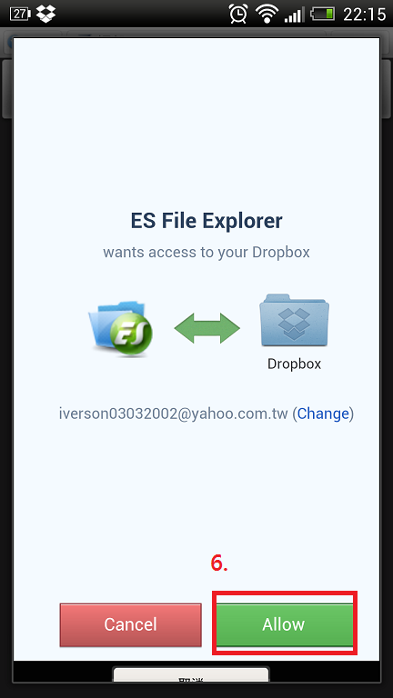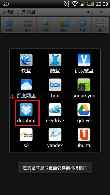 就是在Dropbox APP上要下載檔案時,選擇"Export"之後,選擇"Save to SD card"選項後
