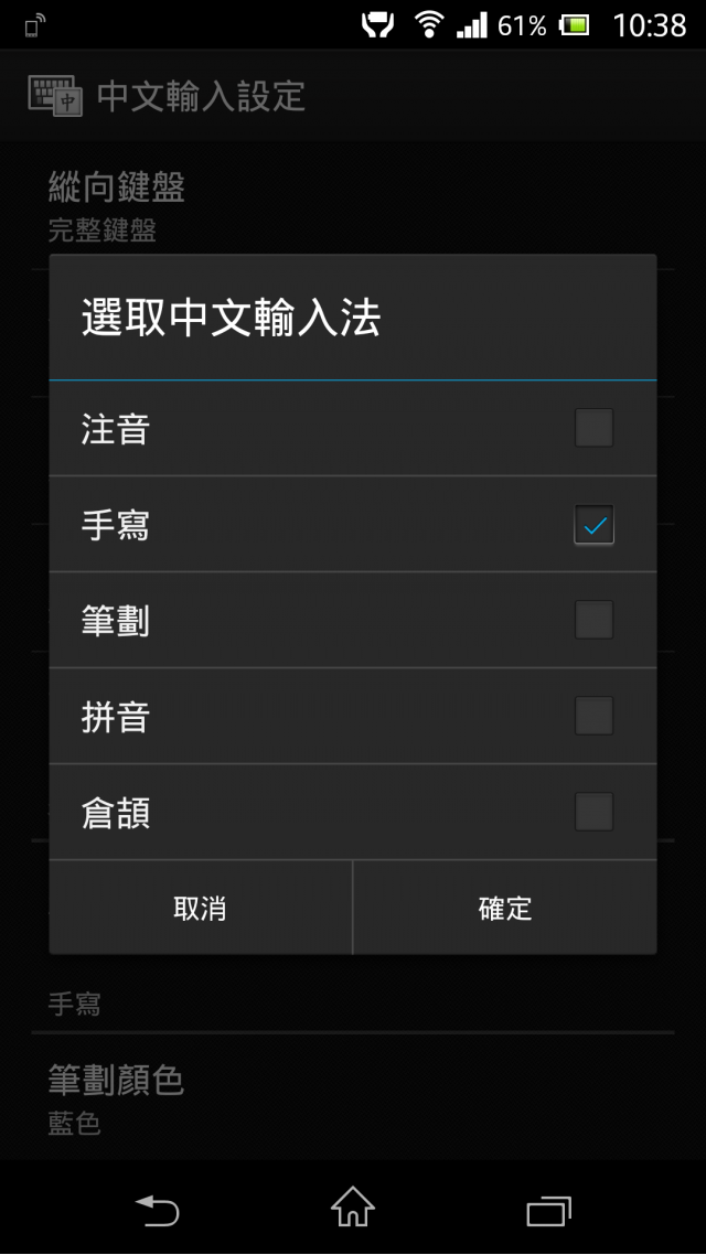 內建的輸入法注音時好像無法直接手寫