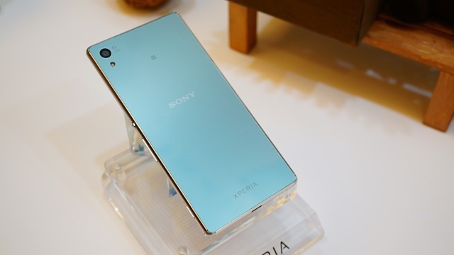 Sony Xperia Z3+背面的樣子。碧水藍這個顏色,真的很漂亮!