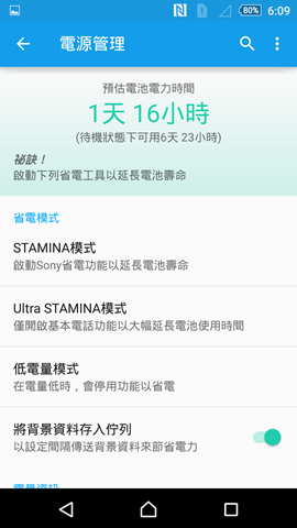 以喔熊我拿到的Z3+體驗機,在體驗一段時間之後,電力剩下80%,而系統顯示電力還可使用40小時,簡單換算一下,當100%的電力時,可使用50小時,的確有超過兩天。