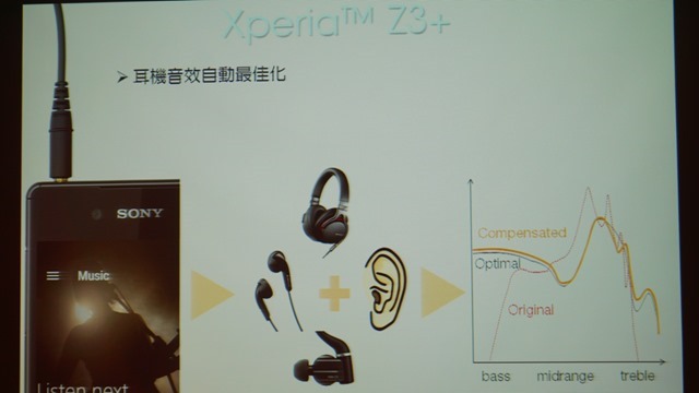 原本在Z3限制Sony耳機,且要手動選取型號,才能分析調整音質設定的Headset Compensation功能,在Z3+中則變成可以自動偵測,且不限耳機廠牌,都能依偵測到的型號自動分析調整音質設定,真的是更加實用了。
