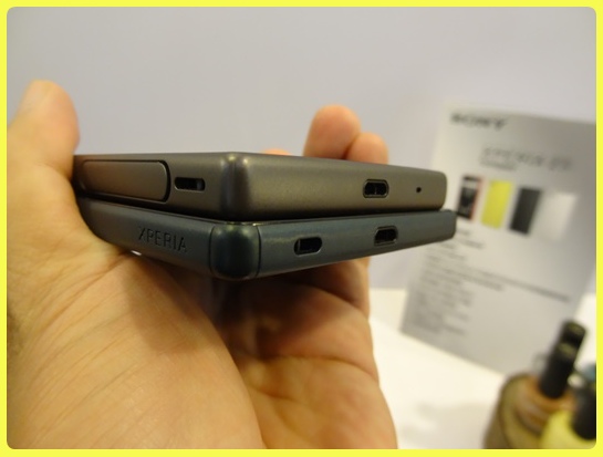 從手機左側邊來看 Z5 與 Z5 Compact,SIM 卡和 microSD 卡的配置方法則完全不相同。