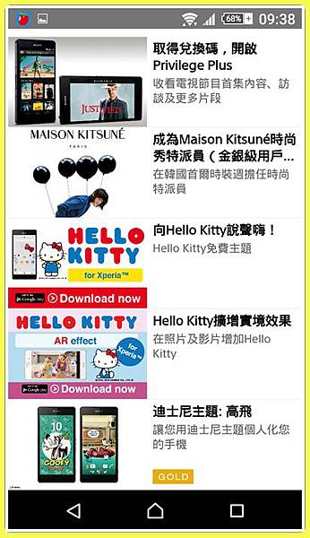 SONY 的主題介面常推陳出新,像2015年9月,SONY 就推出全新的 Hello Kitty 及迪士尼高飛狗主題提供下載,換上全新的介面風格,就像替手機換上新裝一樣令人開心。