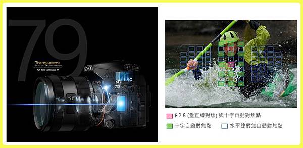 混合式自動對焦(Hybrid AF),應用相位對焦(Phase Detection AF)與對比對焦(Contrast Detection AF)兩種對焦模式,短時間內準確對焦,能達到 0.03 秒快速自動對焦最大效能。