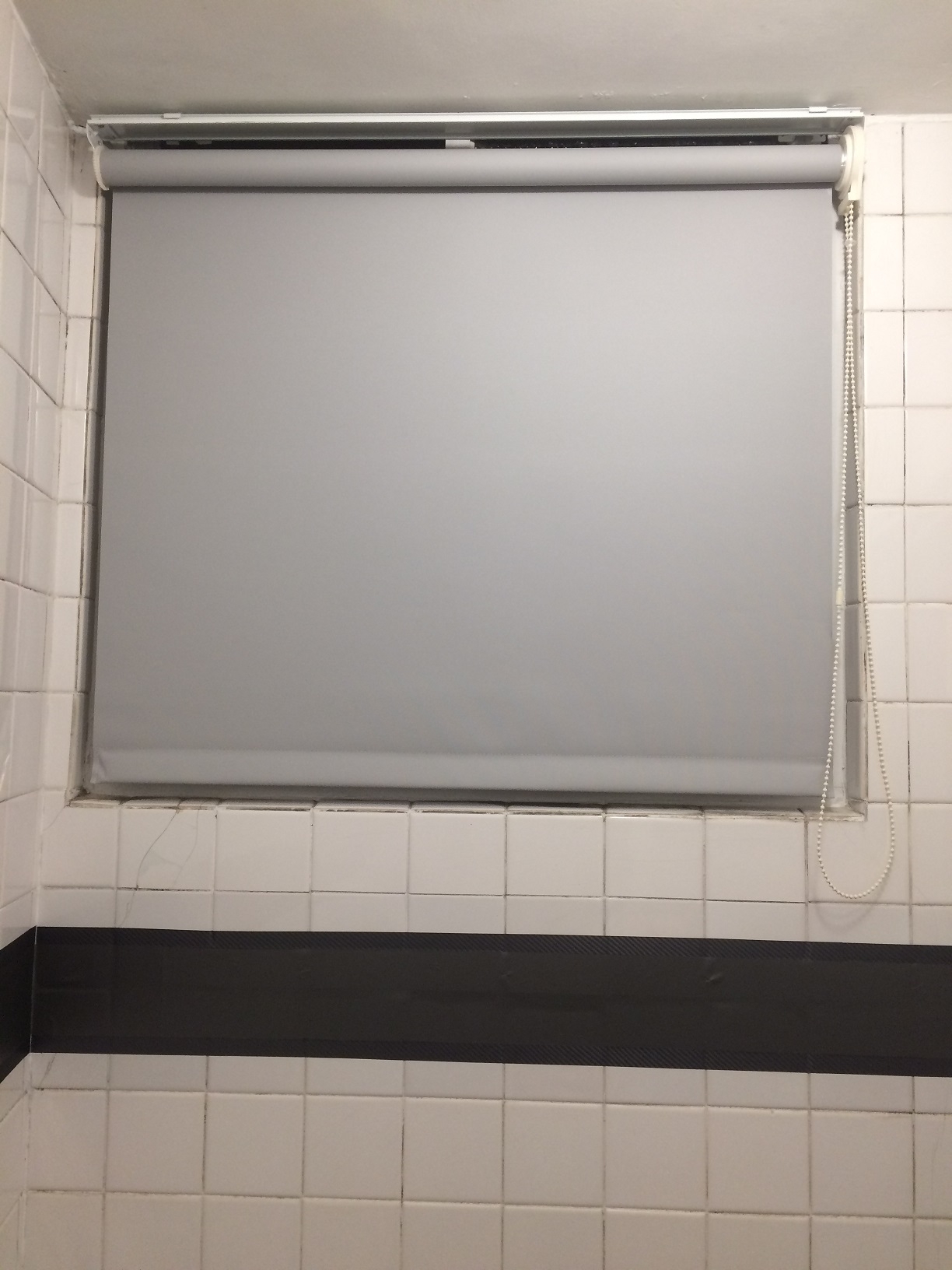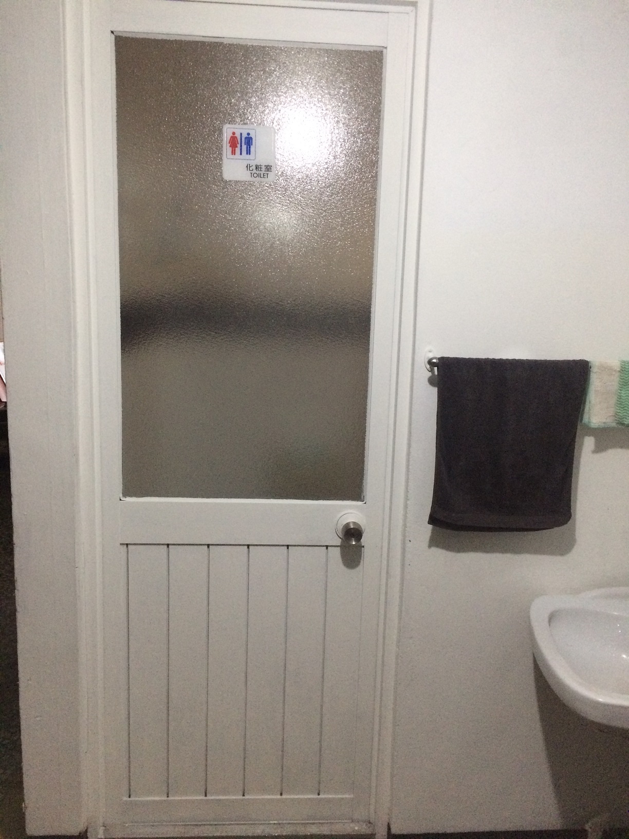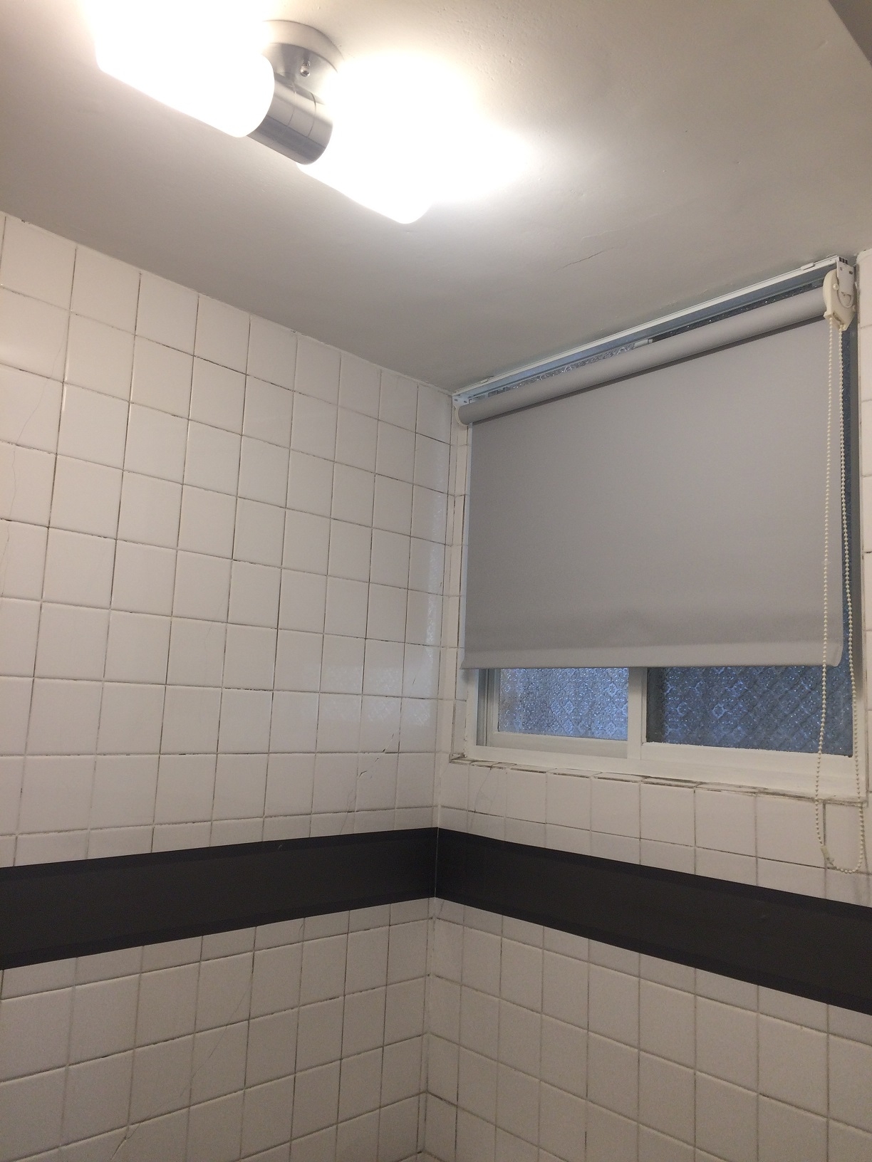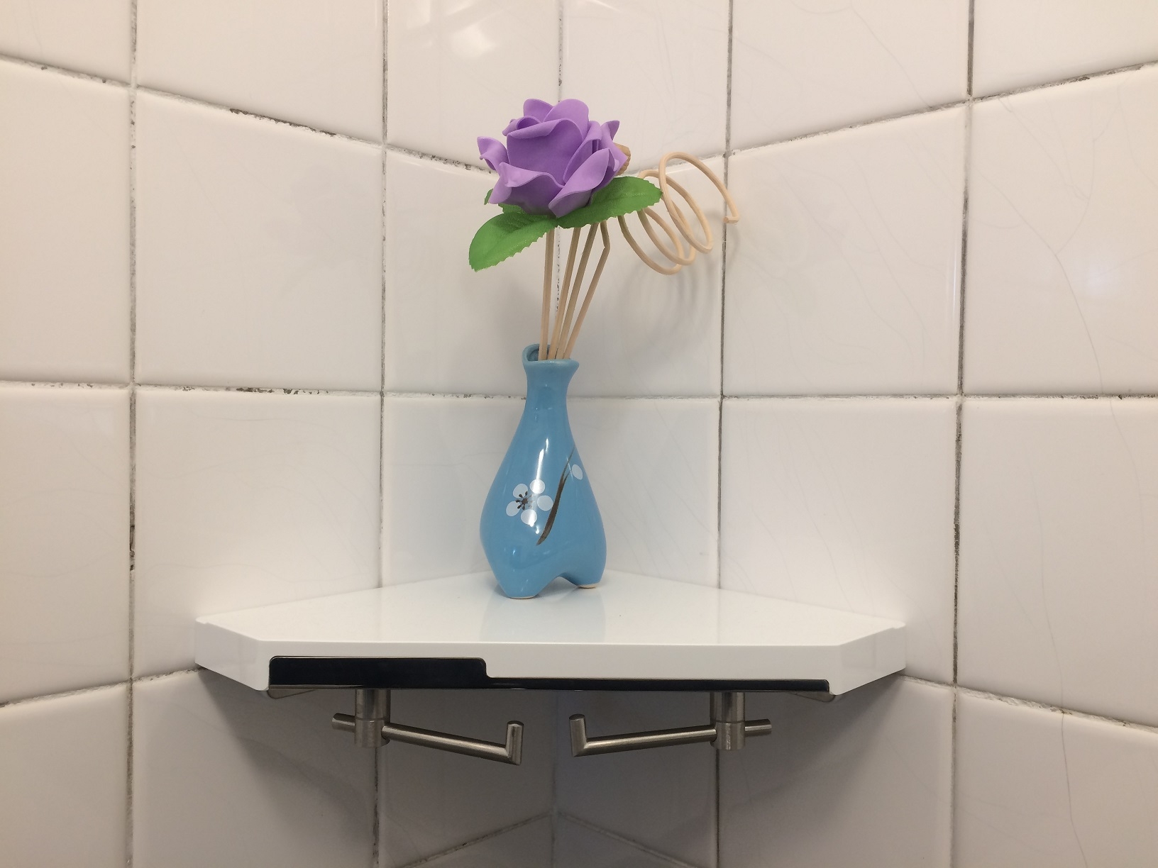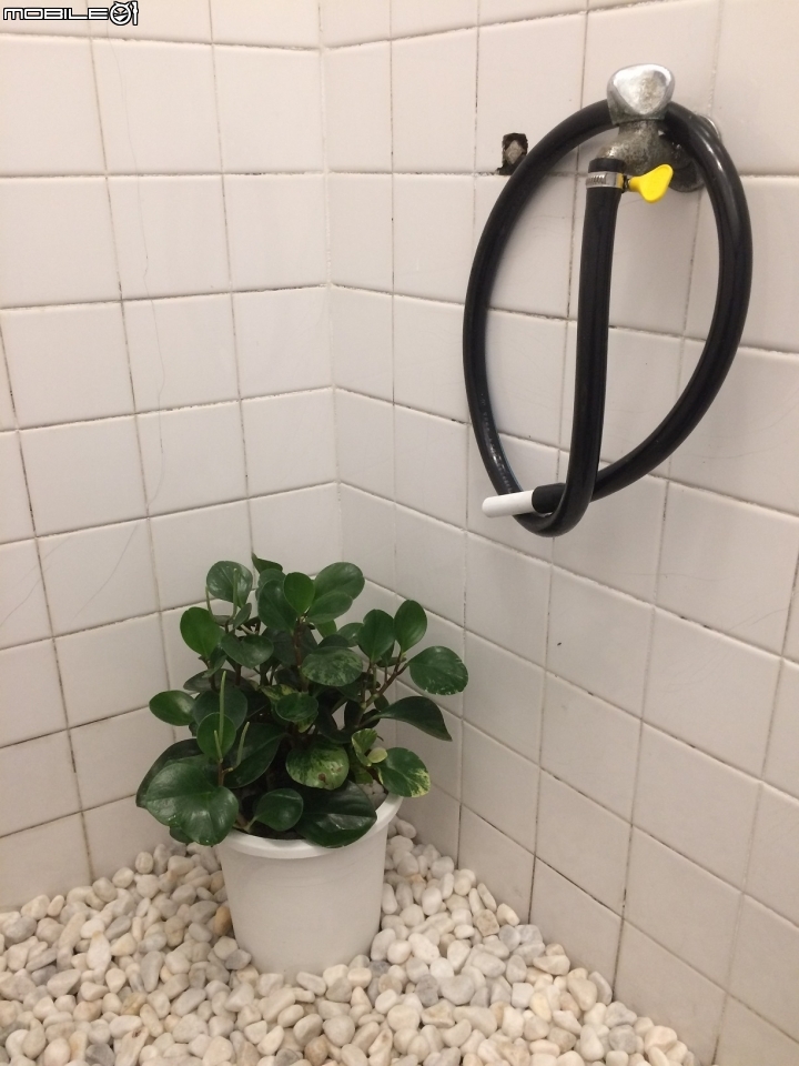 (1)老家40年的房子,客人不時會使用的客廳廁所,地磚膨起破裂沒得更換,洗再乾淨感覺還是老舊:(2)忙裡偷閒花小錢DIY改裝計畫--第一天,用低濃度鹽酸清洗壁磚及馬桶;第二天,使用平光白漆粉刷天花板、鋁門、鋁窗及門外洗手台;第三天,更換馬桶刷、沖水金屬把手及龍頭水管;第四天,加裝壁掛置物吊衣架及更換LED天花板壁燈;第五天,更換鋁門毛玻璃及再次粉刷鋁門;第六天,使用3M銀灰炭纖維及深灰消光貼膜,覆蓋老舊花紋壁磚;第八天,使用觀音石板及白色鵝卵石鋪蓋地板,放置綠色盆栽;第九天,鋁窗加裝訂製的淺灰色捲簾。全部完工後,老婆插花贊助花朵造型精油芳香劑: