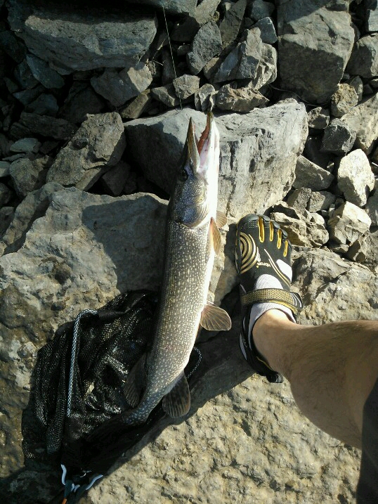 本周開心的..破了野B的記錄一到釣場天色還沒亮,就先用MEGA的水表蟬試試看..才拋沒幾竿,一個大水花,立刻反射揚竿!!!拖近一看!大傢伙!! 直接引拔拍裸照!爽阿!!!後面就換上MEGABASS VIB X連起了好幾尾,秋鱸果然用硬餌效率比較高呢~這周順便幫安達換上最近很夯的小徑化培林~也順利幫172-H開了野鱸的胡推薦一下這兩樣東西~~小徑化培林MB的顫泳 這禮拜應該幫我起了10條野鱸有..一隻才315..