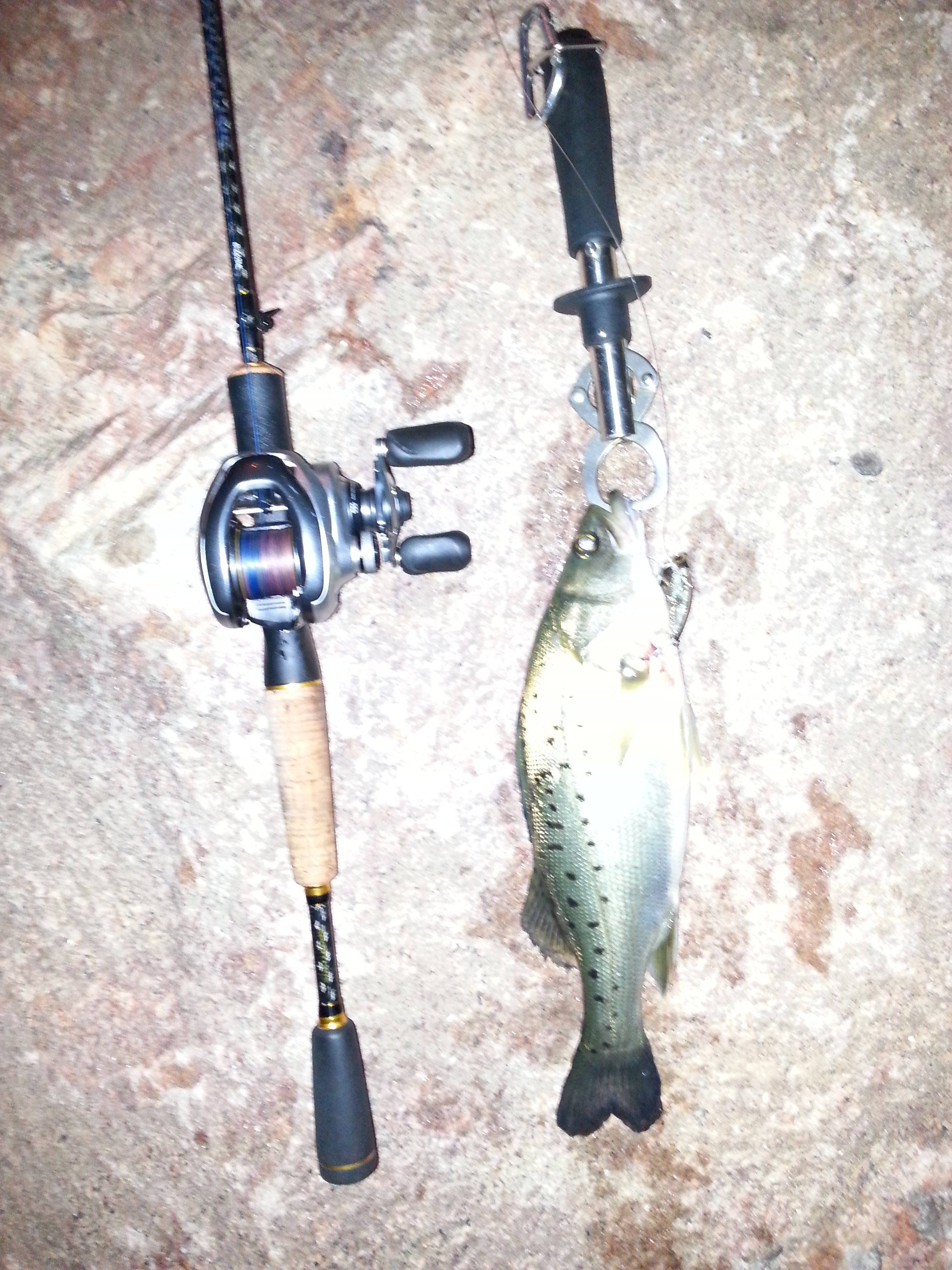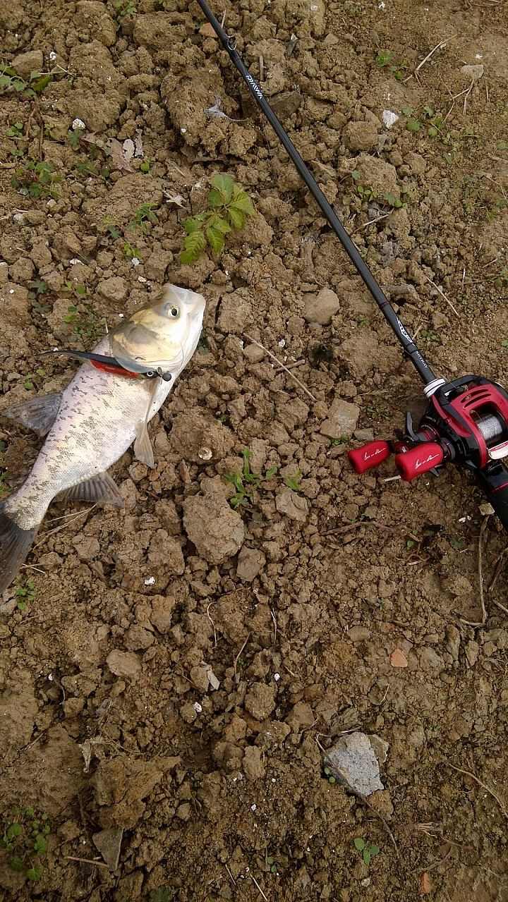 週日有一上午的空擋剛好前陣子某路亞基地的網路平台公告冬季降價到十二月底前收費降價 (每日 80 rmb -> 60 rmb),且釣多少都可以帶走頂著寒風,也過去試試倒不是為了帶魚走,而是冷落這場地一陣子了主要是河道旁行走的路是土堤,前陣子下過雨釣完會很狼狽冬天魚往深水游去了,可是水位變好淺釣了半天沒訊號靈機一動,入水口的水溫應該高一點吧,於是往那拋去中了一尾鱸魚,接著又中了一尾路過的鰱魚魚全放回去了,今天才想到應該帶回來放到社區裡的小湖 我不是鱸魚 … 找我有事嗎 ?