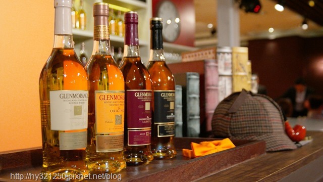 在門口報到後,進門馬上看到陳列展示的四瓶格蘭傑核心系列威士忌。由於一旁還有偵探帽,讓我當下以為這次品酒會的主角,就是它們了。然而,事情不是像我這個憨人想的那麼簡單,因為好戲在後頭!
