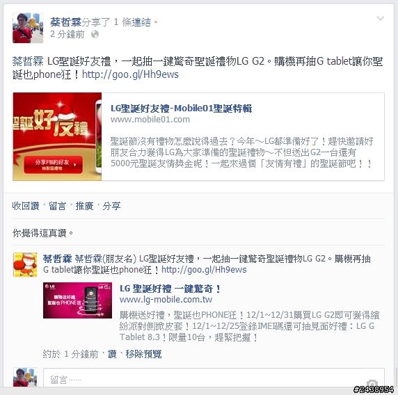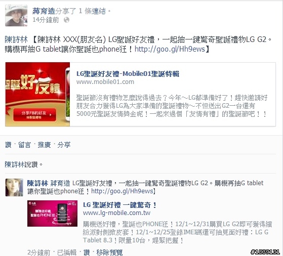 抽我抽我! 當我聖誕禮物吧! LG G2 我來嚕!