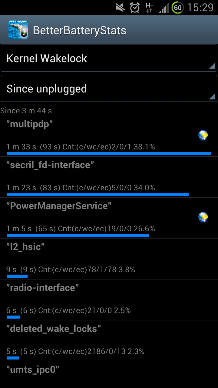 另有他人指出,如果用BetterBatteryStat 查看有出現"secril_fd-interface"的話