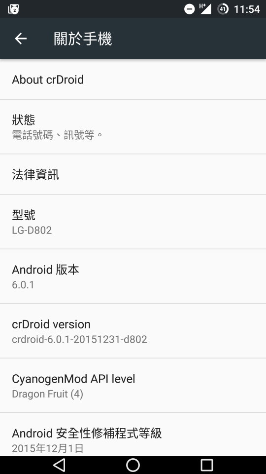 Popeye wrote:驚驚!!!6.0~...(恕刪) jiuanli wrote:我也很想知道G2升6...(恕刪) 好用! 省電,順暢~由於這版不是討論6.0的我就只貼個連結就好了http://forum.xda-developers.com/lg-g2/development/rom-crdroid-t3120790keyword: crDroidp.s 升級有風險,請做好變磚的心理準備