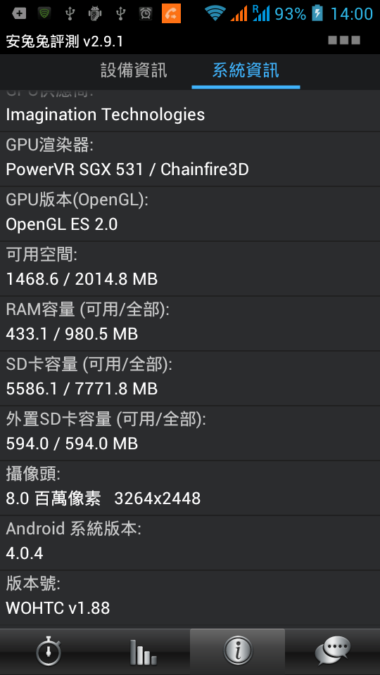 a125387509taiwan wrote:請問醫下著g36不是...(恕刪) 4G ROM , 3.8G 左右可用.SYSTEM 佔走一部分,其他切成 512MB +2GB正常是 \DATA: 512MB , \SDCARD2: 2G不過可以調換過來,變成 \DATA: 2G \SDCARD2: 512M圖中有個"外置SDCARD容量" 59X MB,那是 4G ROM 的一部分