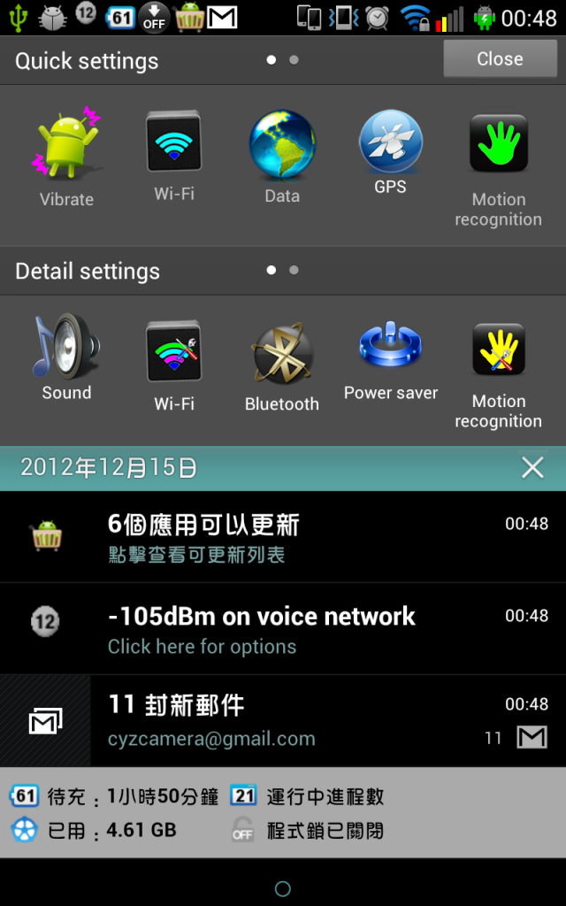 logigt wrote:把GOOGLE BA...(恕刪) 因為每次開機以後他都會上網同步一次 你裝360省電王去看耗電排行就會看見端兒了然後這個是我發現的設定 原本是 全頻掃描 我把它改成中華的頻段 2100了可以看見最高耗電的還是通話 但是Cell Srandyby 已經比系統省電一些了反而螢幕最不耗電 choubig wrote:升級4.04後3G掛...(恕刪) 進入電話 輸入 ##7593## 檢查一下 RRC版本是否為R6換成4.04系統以後 訊號的部分反而變成最耗電的元凶記憶密碼的這個內建系統程式反而耗電