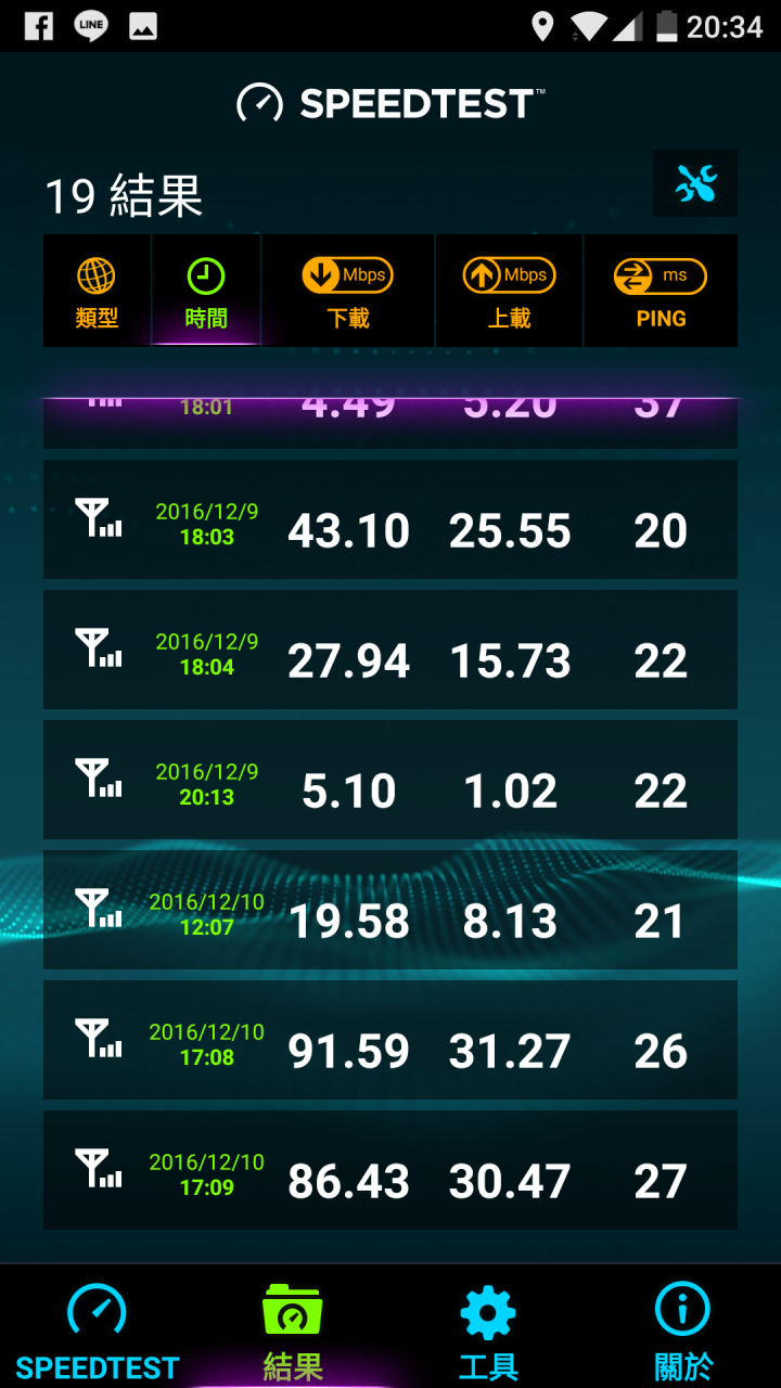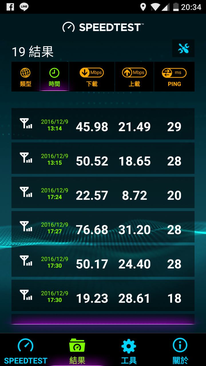 下載速度約70mbps,上傳速度約20mbps。