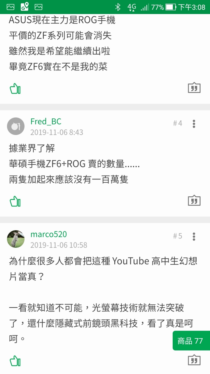 我手上的ZF3當初2017雙11入手的到現在還好好的...前陣子被我摔到,螢幕有裂痕,還是繼續用...繼續當遊戲機/4G分享用主力是去年買到便宜的HTC Exodus 1我太太的ZF4去年買的,今年也好好的,後來他換機,ZF4給媽媽用