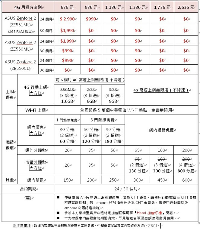 請問中華續約方案出來了嗎? 我想約ASUS ZenFone 2 6990的那隻?