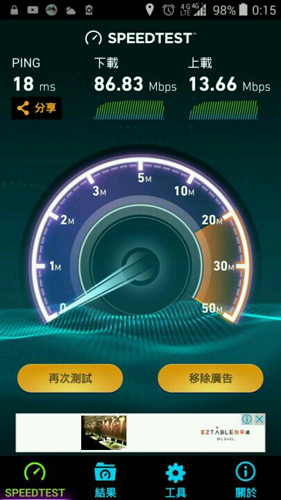 lina33i wrote:舊手機也是用台灣之星...(恕刪) 確實是使用同一SIM 卡,先用舊手機跑一次後,再換新手機跑一次。相同的地點上,為何Ping 數不一樣,我就不知道了。InFocus M550 3DV.S.ASUS ZenFone 3 Ultra的結果。
