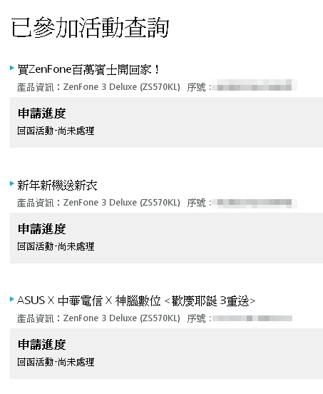 小弟的手機是1月20日在東森購物訂購的24日手機送到,當天就登錄到華碩官網昨天有收到說審核己過等待寄出今天早上9點多就收到黑貓說有包裹速度真是快啊================================================================================================各位有的誤會我的發文了,我只是要告訴大家,華碩送手機套是真的,還沒收到的,不要耽心,敬請大家稍候......