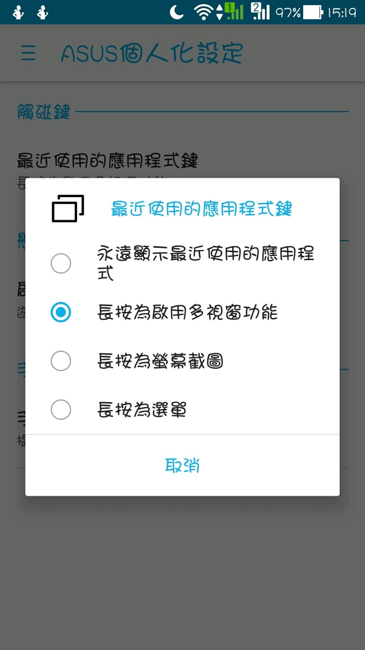 Asus zenfone 3 Zoom的多視窗怎麼關閉