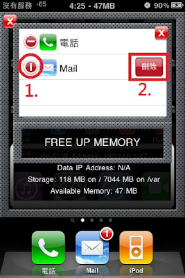 再點右邊的刪除 就可以把正在背景執行的程式~關閉掉 以節省記憶體