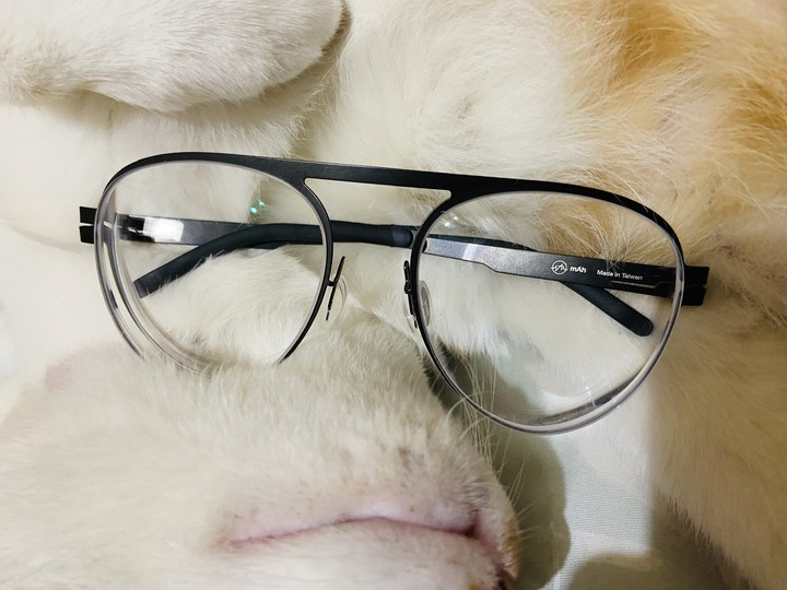 大致上調整完成後就拿到我的眼鏡啦,以下是我的眼鏡及鏡片附圖,順便曬曬我家的貓。