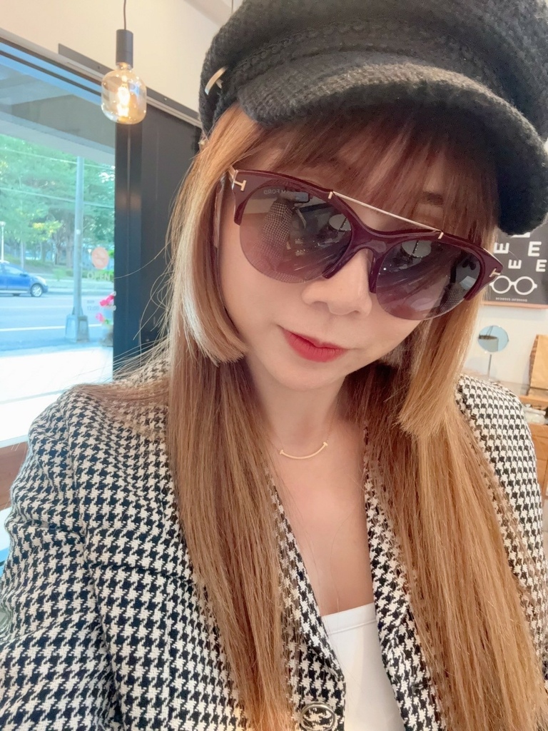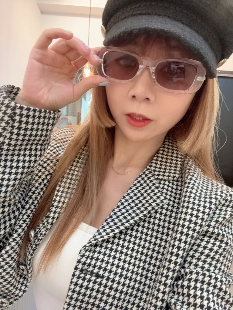 ▼太陽有點曬,戴上我的新墨鏡,粉橘色鏡片~又甜又有氣勢,榮登近期最愛的墨鏡榜單!