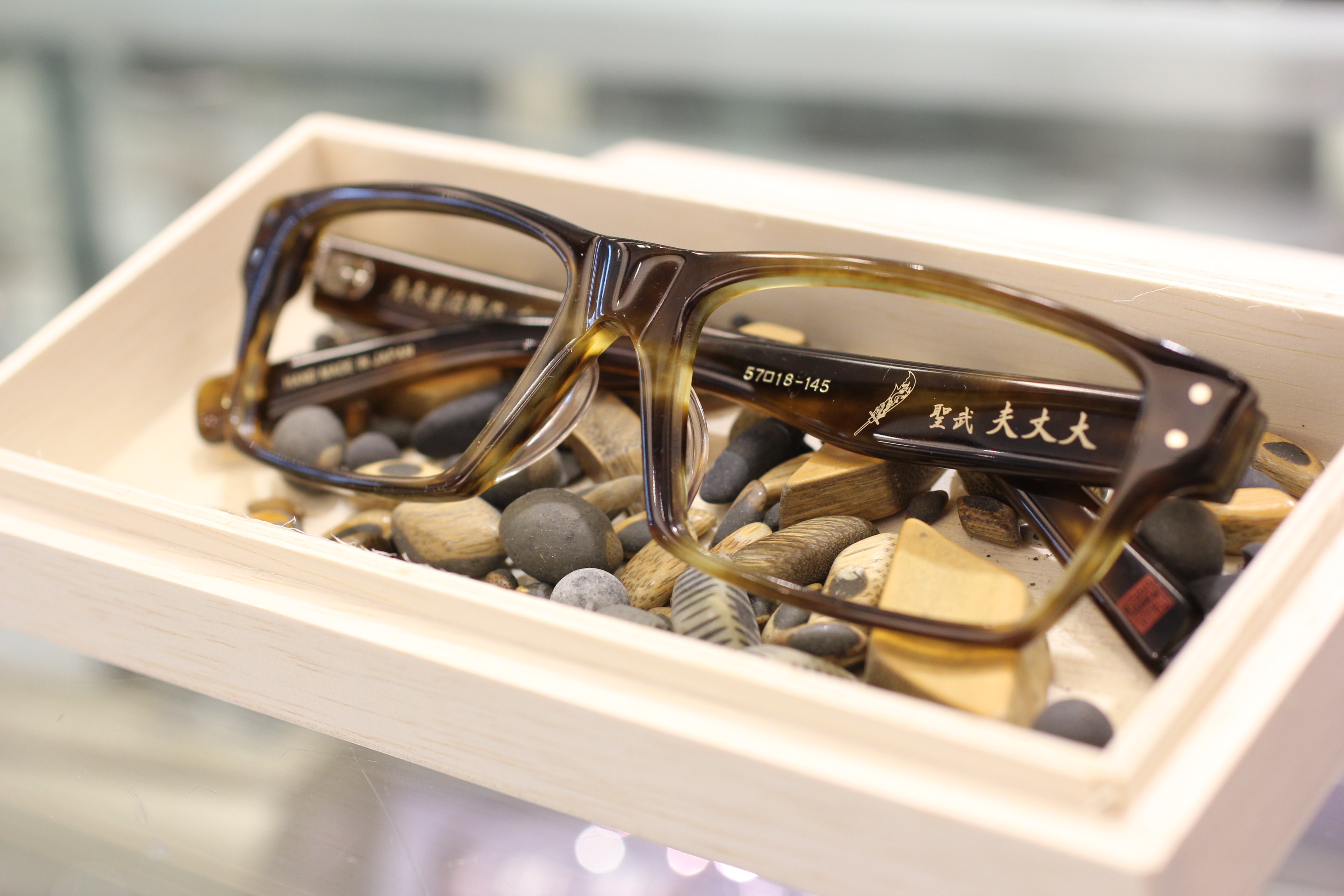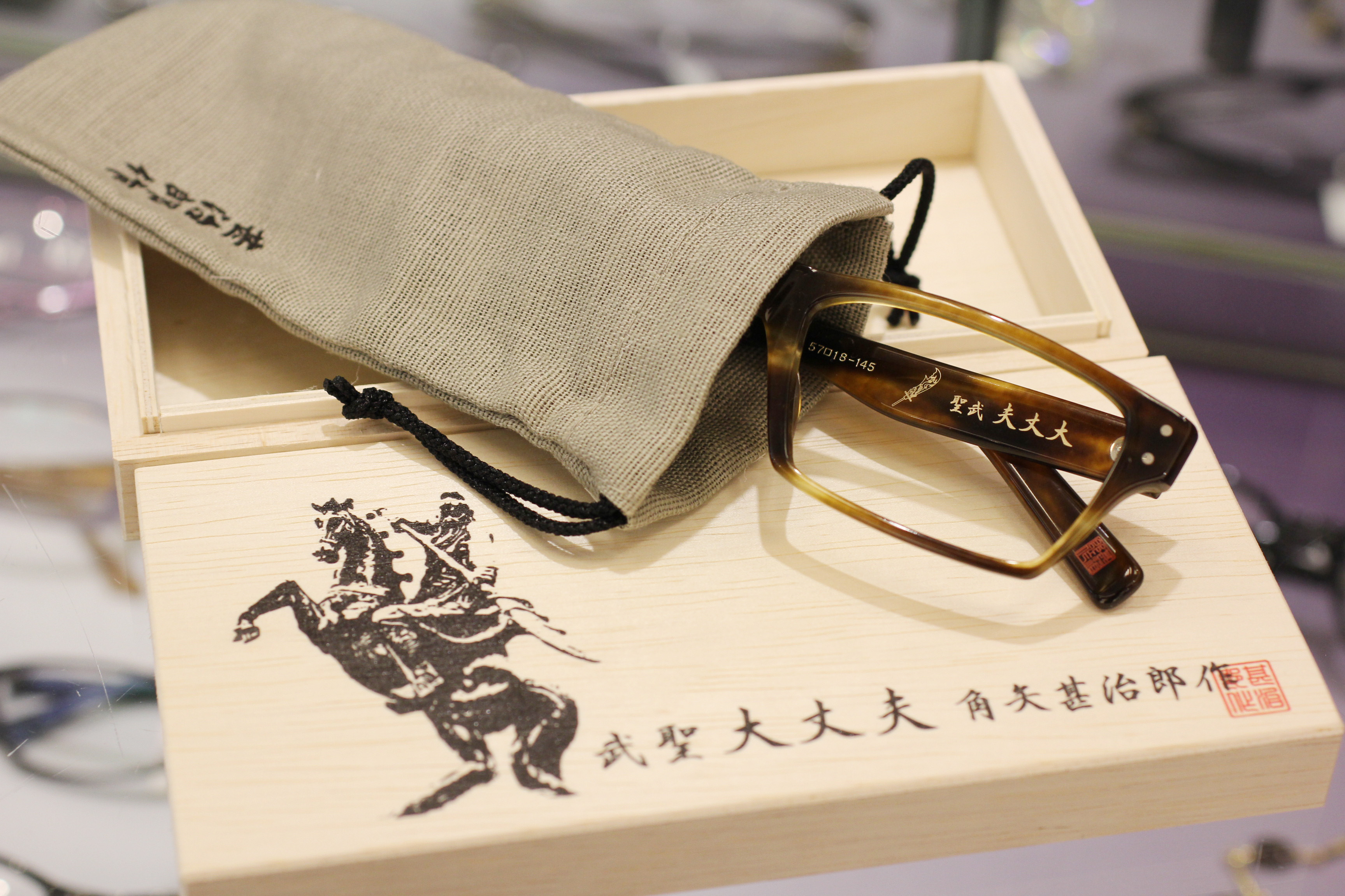 ↑日本手工眼鏡角矢甚治郎作破天荒與台南久必大眼鏡推出的府城限量版眼鏡「武聖大丈夫」