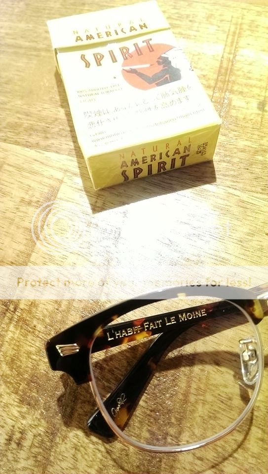 (這張圖片也同時可以看到右鏡腳有一串標語意思為"人不可貌相",而左鏡腳的腳勾那裡有品牌名稱)