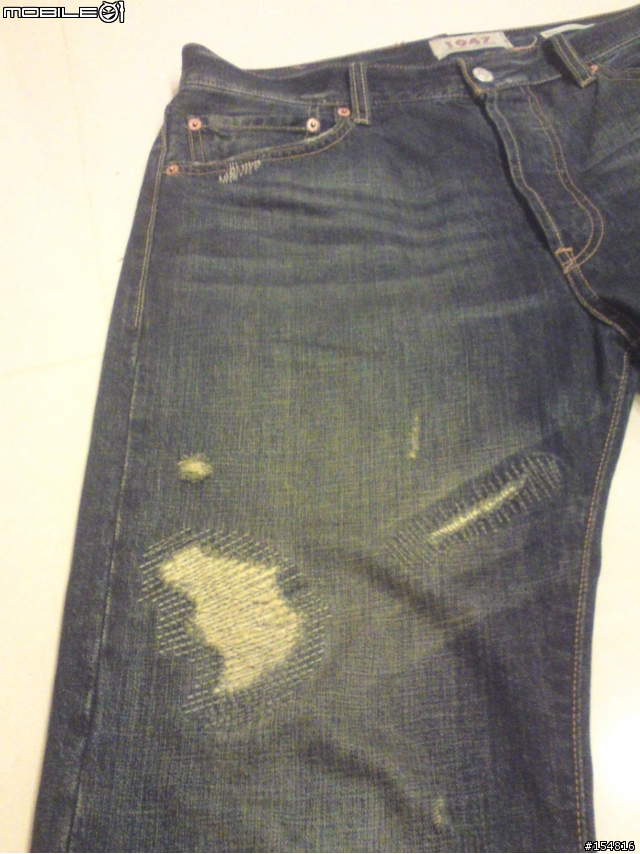 在店裡臨時用手機拍的~不太清楚~而且當初我買不到W32硬要買W34所以穿起來有點大= =你PO的那件好像刷色比較明顯~(比真的還有心!?><)這件應該算是輕磅吧!?沒有日版的厚~不過後面是皮標~後面口袋裡面也有隱藏卯丁(我不知道那叫什麼= =)破壞也做的還不賴~後面口袋海鷗線滿特別的是做線被拆掉的感覺~回家再PO細部圖給你看好了~店裡網路慢= =