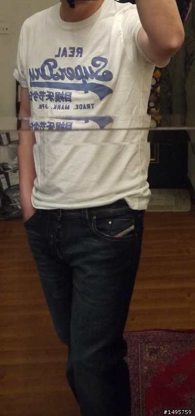 不過失敗為成功之母,有了前2次的教訓,第三次下單的柴油就中了,也感謝01大大們熱情的分享自已的實戰經驗,省了不少冤枉路!補上幾張實穿照給大伙作SIZE的選擇參考~小弟177CM,83KG,胸102CM,腰圍35~36吋柴油上衣穿L,超級乾T-SHIRT 穿L,柴油LARKEE 褲型穿33腰~補幾張傷眼圖~