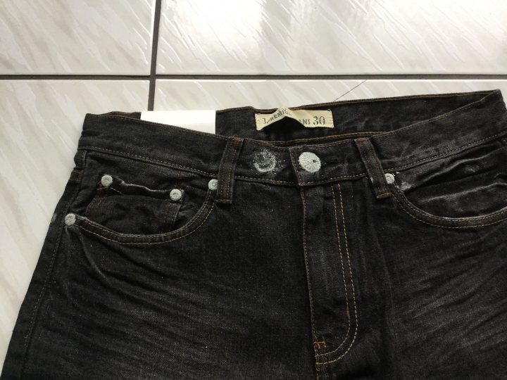 這是買了4~5年的牛仔褲,30寸的買了2條,後因爲腰圍變胖了穿的時侯有點緊,試穿了一下就沒再穿了,也就封存了,後來最近發現穿的下了,就拿出來穿穿看,一打開包裝就有一股刺鼻味,扭扣也腐蝕了,想說有怪味,那就洗一洗再穿好了,沒想到連牛仔褲布料也腐蝕了,洗衣機一洗牛仔褲變2半,好誇張,他們不是標榜出廠都有水洗過怎會這樣......