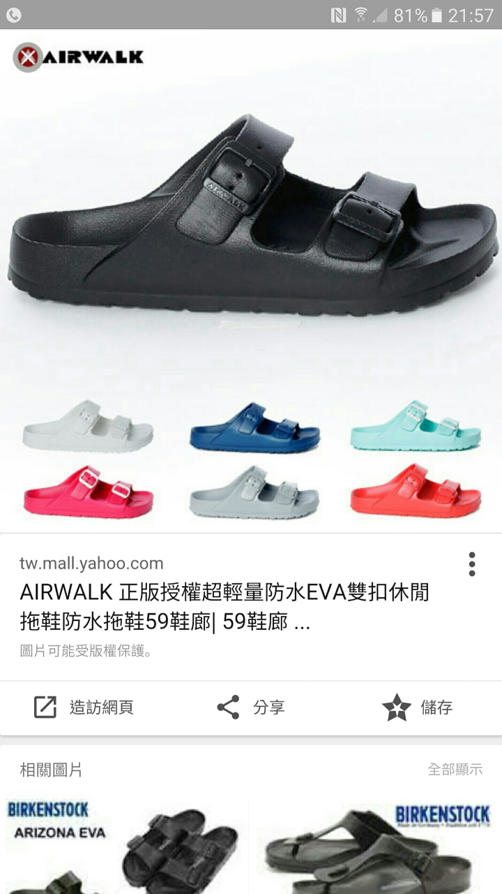 張小小宇 wrote:小弟平常外出夜市.買...(恕刪) 應該是說不怕水鞋款,而不是「防水」。推薦布希鞋或他牌同級鞋款,我上班、出國、游泳或到海邊都曾穿,完全符合「居家.外出.戲水.烤肉.海灘一雙搞定」。類似鞋在夜市50~100就買得到,但鑒於腳底接觸吸收「塑化劑」疑慮,我寧願買1500元以上的安心。