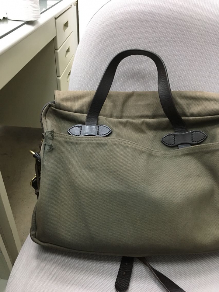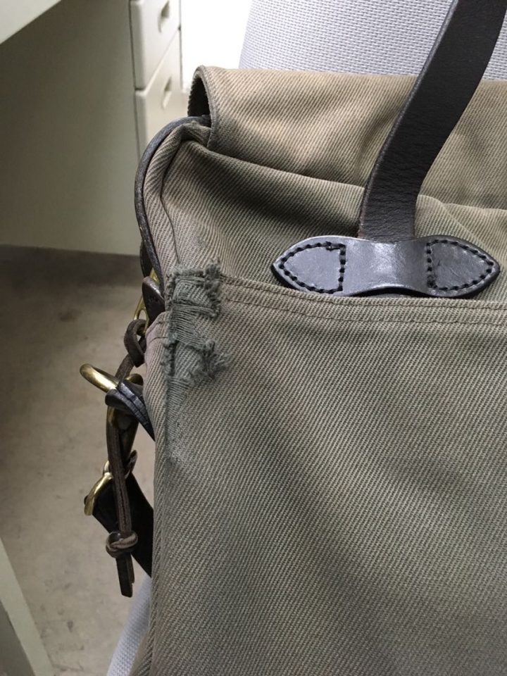 Filson基本上黑色不怎麼色落,經常磨擦到的地方會變成鐵銹色(類似棕紅)。