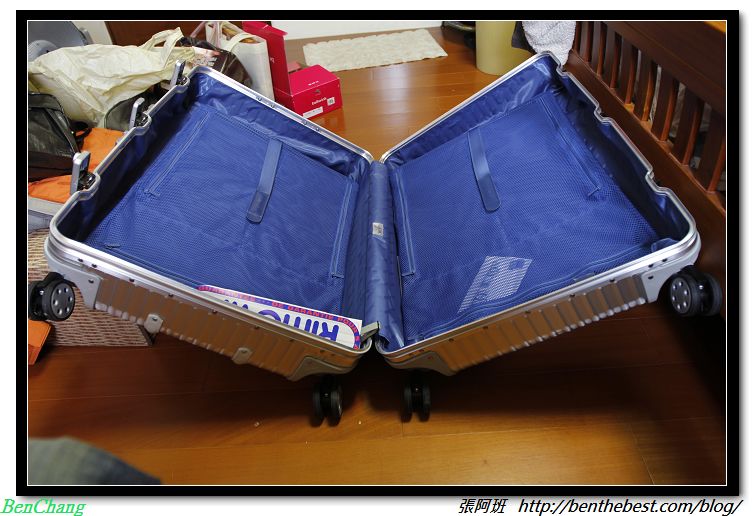 會想要購入RIMOWA 相信每個人都是因為喜歡那無法自拔的極美外觀。用鋁鎂合金的外殼,雖然容易撞傷,但是卻依然歷久不衰,最大的原因就是不管怎麼撞怎麼摔,那外觀就是像牛仔褲一樣,越用越美麗。另一個部份當然是極細的工,把每個細節都弄得相當精細,不但如此,輪胎好推好滑,就算帶很多也不怕。像張阿班這幾次都去雪地,那360度的四輪傳動真的順了不少,實在沒有太多地方好挑的。唯一要挑剔的大概還是那嚇人的價位吧。不過相信用過的人,絕對不會嫌這價位的,因為值回票價都是在使用之後的。