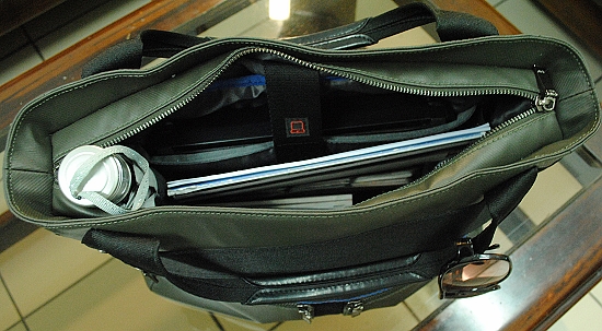 收納袋共有兩層,外面那層可放入A4筆記本、資料夾剛剛好,記事本、名片本放進中央的空間,前方兩個內袋可放入電源線、滑鼠、髮雕、眼霜,這樣每樣東西都有屬於自己的空間,聰明的收納空間不會使東西擠來擠去,更不會互相刮壞自己。