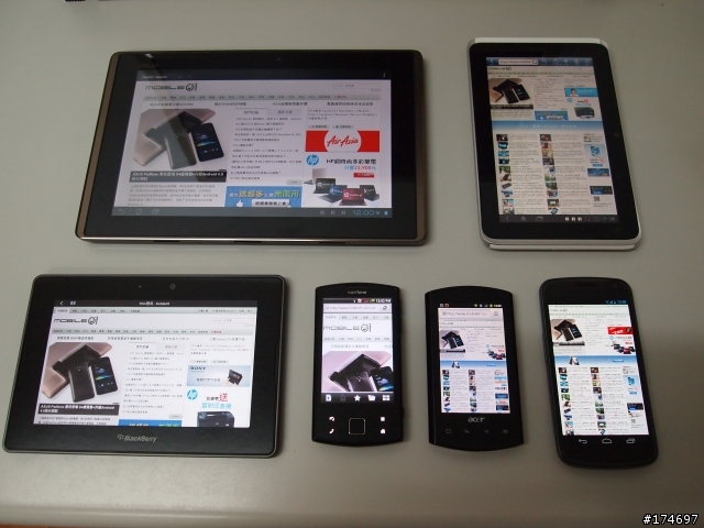 不知不覺手邊有6台行動裝置了~上排:ASUS TF101、HTC Flyer下排:BlackBerry PlayBook、ASUS A50、ACER Liquid E、Galaxy Nexus已加入01粉絲頁^^