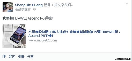 我要抽HUAWEI Ascend P6手機!小惡魔粉絲團GOGOGO!