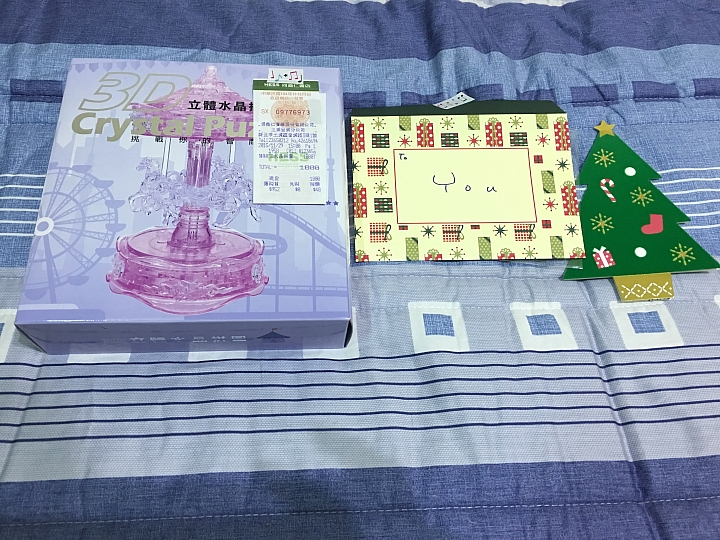 昨晚下班到家後,看到桌上有盒黑貓包裝的物品下意識就覺得是禮物到了一開始拿起盒子就有塊狀物在盒內晃動的咖啦、咖啦聲原本以為是樂高,打開後居然是驚喜的水晶積木有緣人感謝您,也祝福您有個快樂的聖誕節、平安喜樂顧著開箱,擔誤阿喵們滾床了。