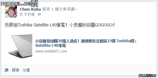 我要抽Toshiba Satellite L40筆電!小惡魔粉絲團GOGOGO!