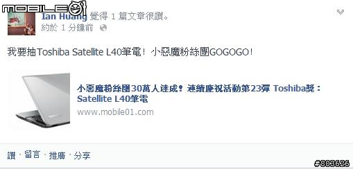 我要抽Toshiba Satellite L40筆電!小惡魔粉絲團GOGOGO!!!!