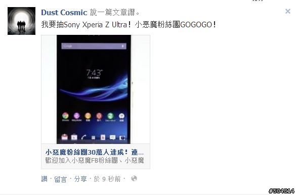 「我要抽Sony Xperia Z Ultra!小惡魔粉絲團GOGOGO!」