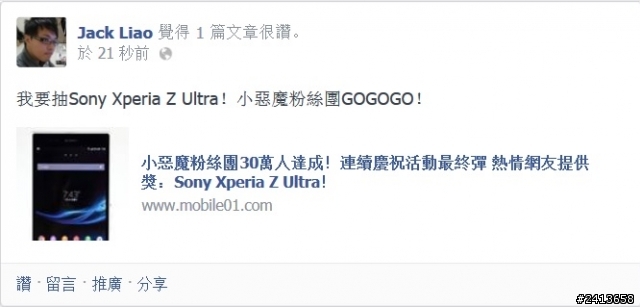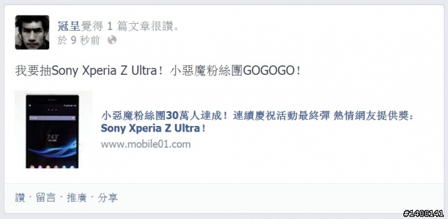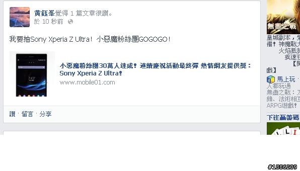 我要抽Sony Xperia Z Ultra!小惡魔粉絲團GOGOGO!