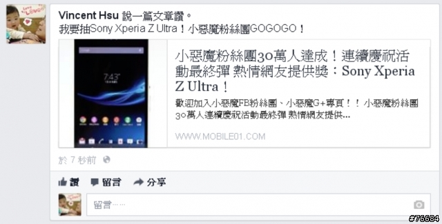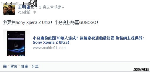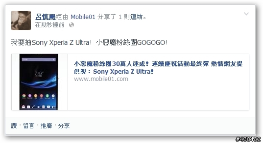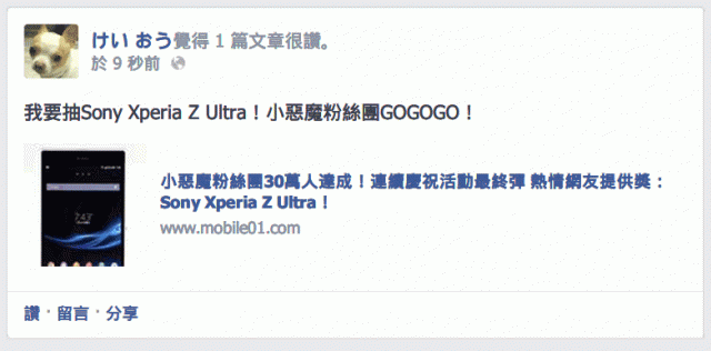 「我要抽Sony Xperia Z Ultra!小惡魔粉絲團GOGOGO!」
