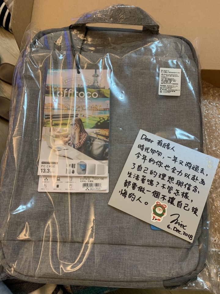 剛剛上班看到黑貓叼來的禮物~~是個實用的電暖器~~ 雖然今年似乎是個暖冬...可能沒什麼機會用到...但我會留著它的~~~謝謝來自中壢第一次參加的小比~ 聖誕快樂~ 我準備的禮物在#478樓被開箱了~很高興你喜歡這份禮物~也祝你聖誕快樂喔~~