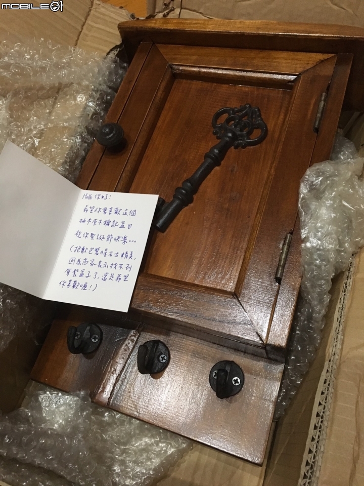 <第一次參加活動>今天警衛傳訊息來說有我的包裹,馬上想到期待已久的聖誕禮物!!果然沒錯,警衛先生拍了個照 說箱子很大 但不重心想應該是大獎之一咖啡機了!!馬上請家人去幫我開箱,結果出乎我意料之外的喜歡是木製鑰匙盒 + 一張小卡片真的是.....太感動了!!我很喜歡這禮物!!!!!!! 非常實用 馬上在新家可以掛上!!!!!!!~~~感謝這位惡魔朋友的禮物~~~