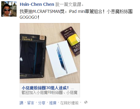 我要抽M.CRAFTSMAN獎:iPad mini華麗組合!小惡魔粉絲團GOGOGO!