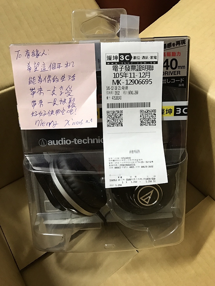 早上就收到禮物啦~第一次參加交換禮物回到家才跟老婆大人一起開箱登~愣~我的是Harimaron‘s Tree House(疑?他誰啊@@a)老婆大人的是鐵三角耳機~(啥?我只用過三角鐵==)結果我們兩個又交換禮物一次XD話說我們的好像還沒被開箱...期待有緣人快出現啦!