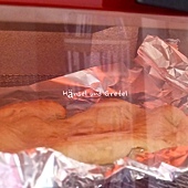 放進烤箱後,「香蒜口味」印度烤餅又出爐拉!